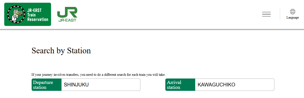 - Under Departure station, select Shinjuku. Under Arrival station, select Kawaguchiko.